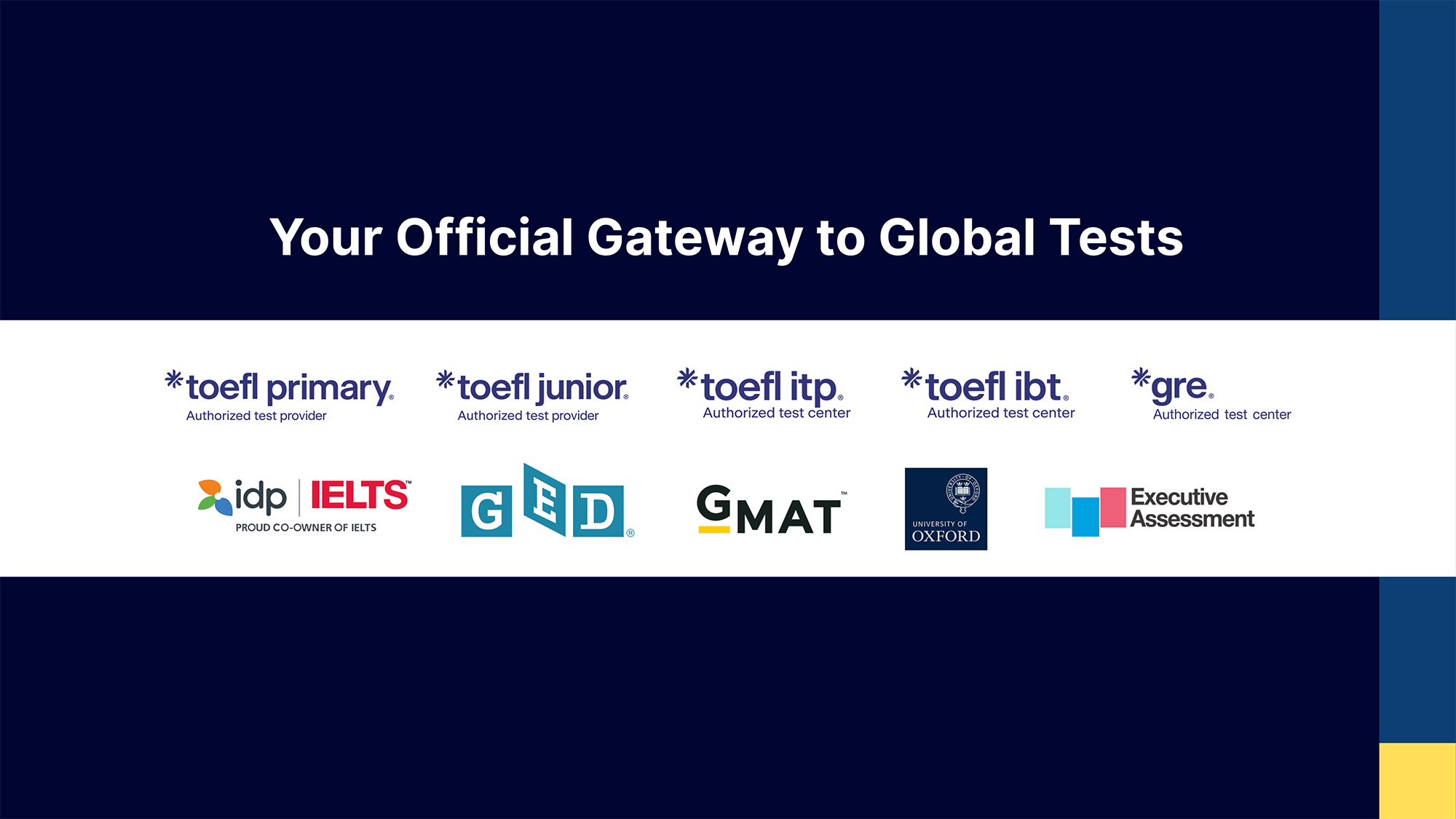นอกจากนี้ พาราไดม์ยังเป็นศูนย์สอบมาตรฐานระดับสากล ให้บริการจัดสอบ IELTS (Computer & Paper), GED, TOEFL iBT®, TOEFL ITP®, GMAT และ GRE® ศูนย์สอบตั้งอยู่ใกล้ห้างเซ็นทรัลชิดลมและ BTS ชิดลม ให้ความสะดวกและความเป็นส่วนตัวแก่ผู้เข้าสอบ พร้อมอุปกรณ์และสิ่งอำนวยความสะดวกครบครัน