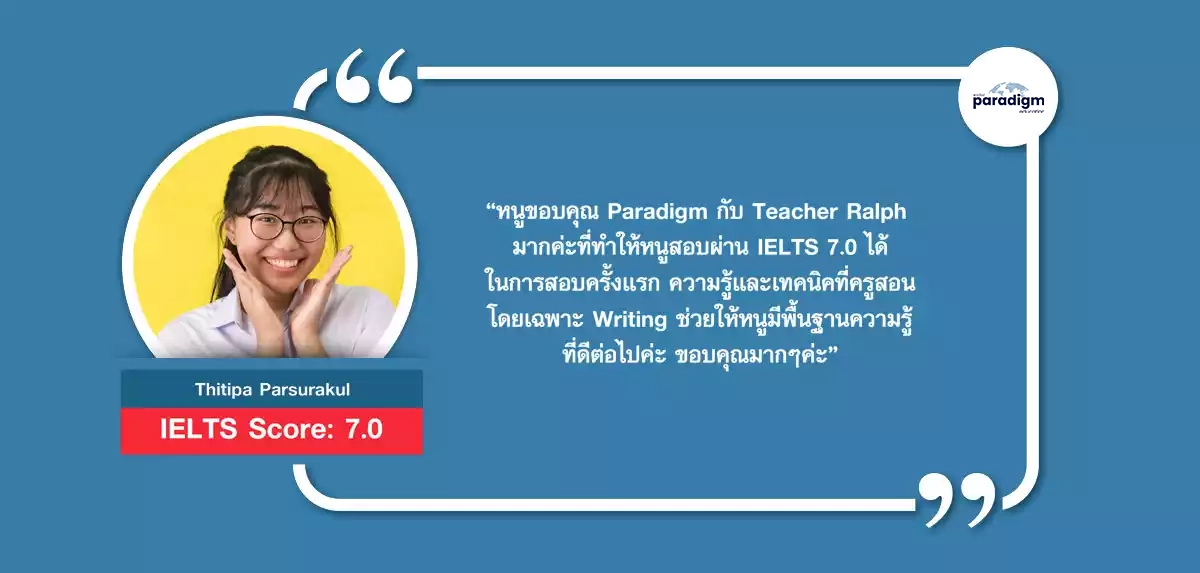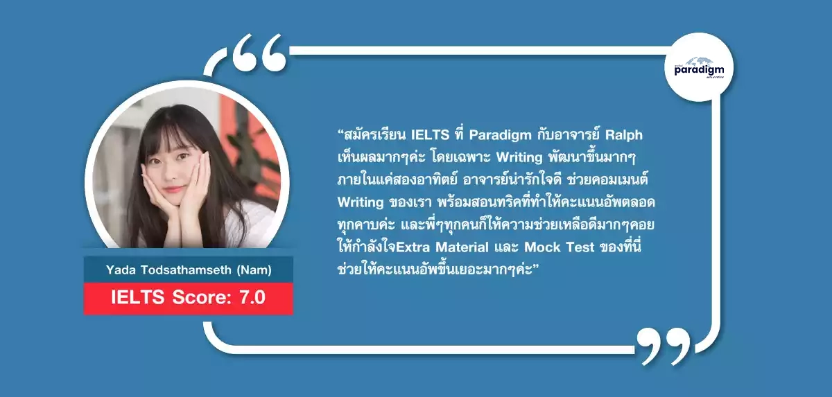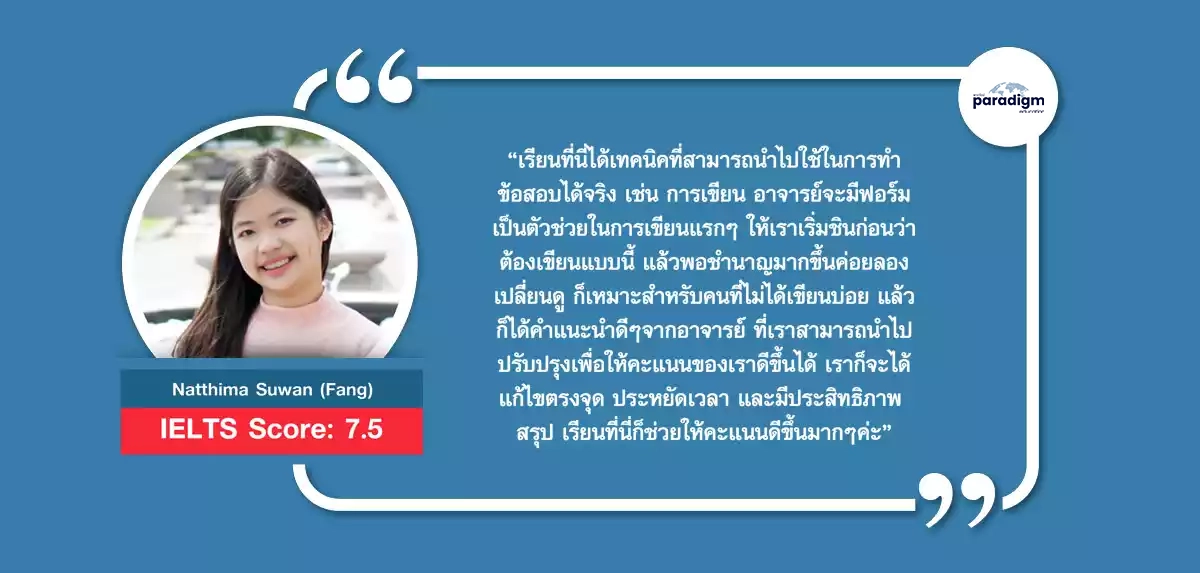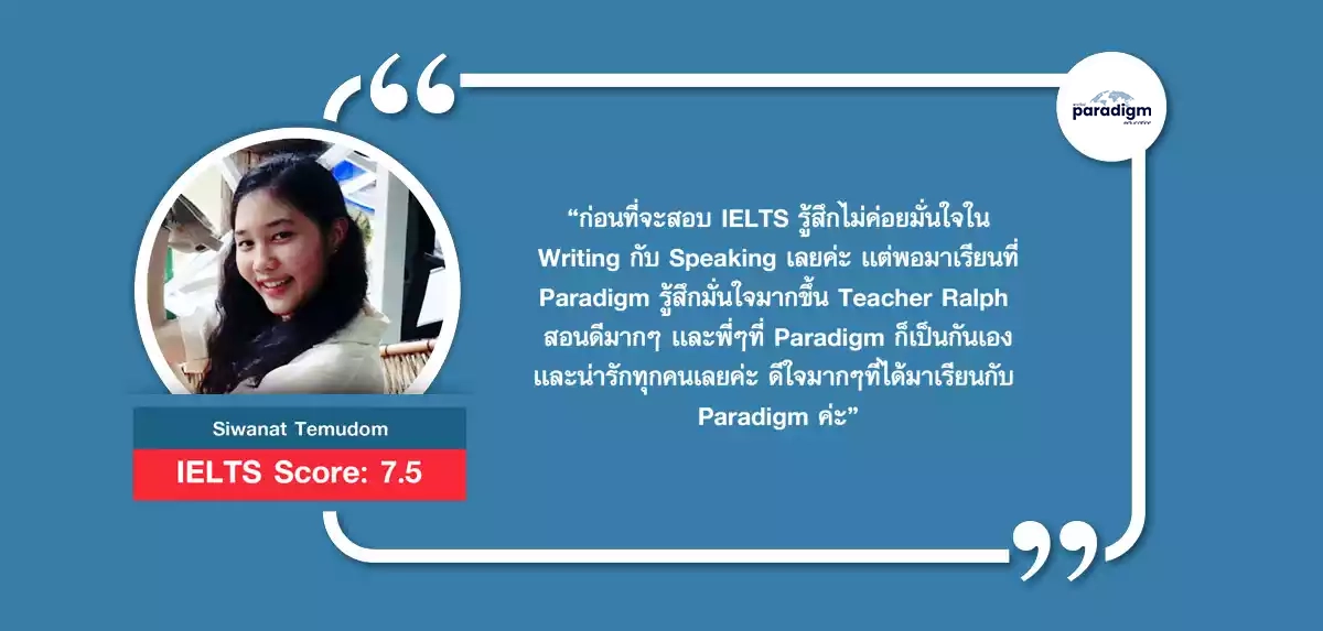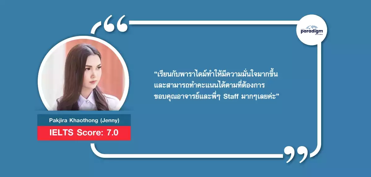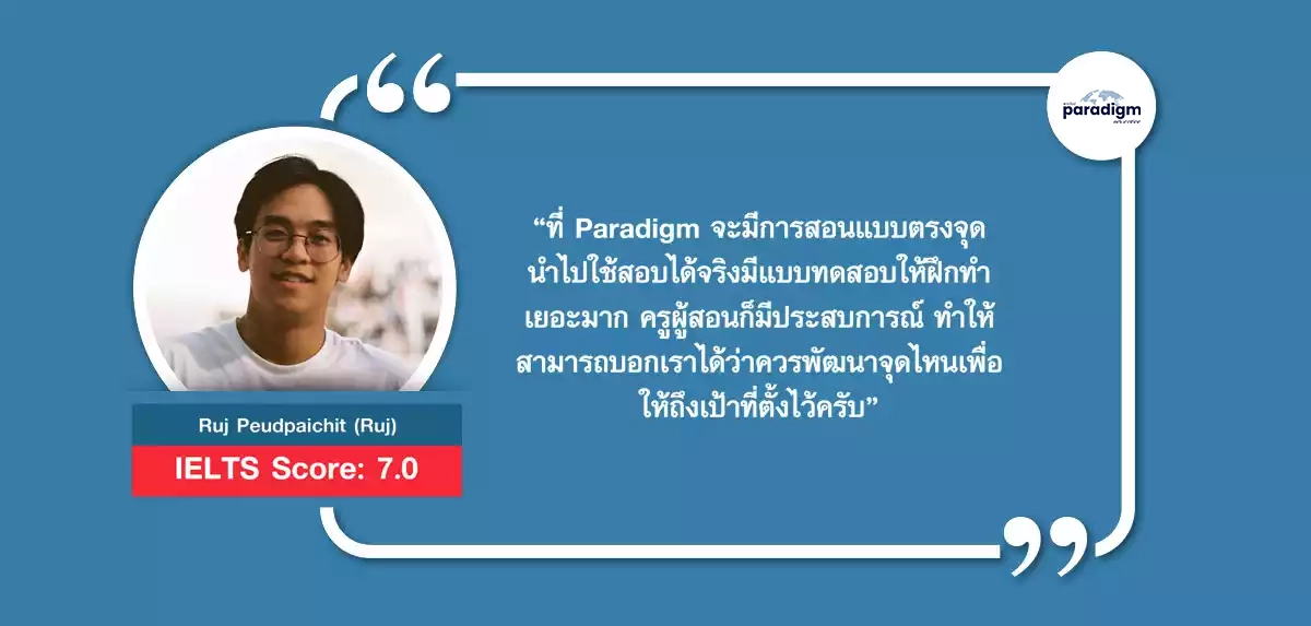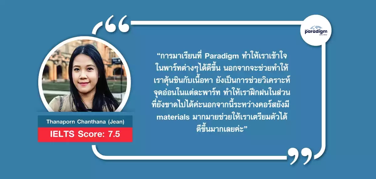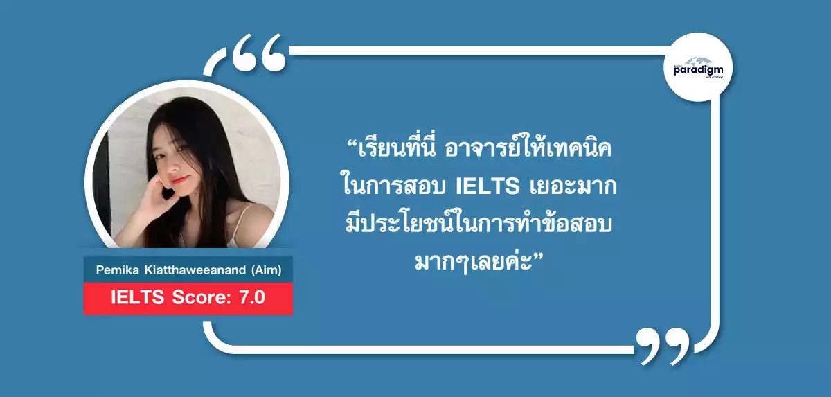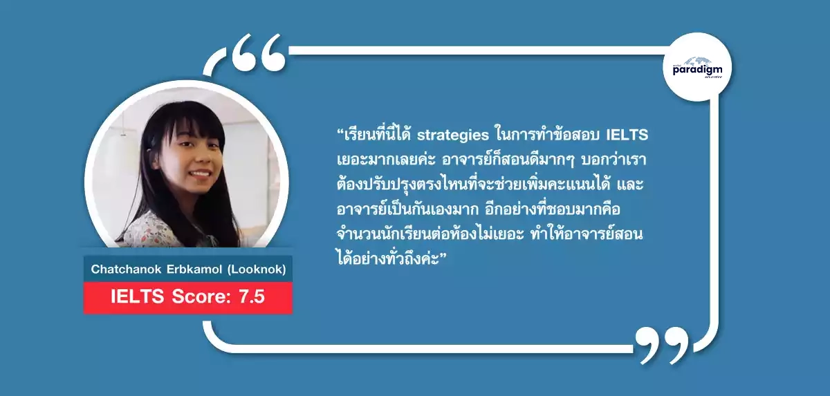 คอร์ส เรียน IELTS ของพาราไดม์เป็นคอร์สที่ช่วยพัฒนาทักษะทางภาษาของผู้เรียน ให้ได้ตรงกับมาตรฐานของการสอบ IELTS หลักสูตรของ เรียน IELTS พาราไดม์นั้นจะประกอบไปด้วยคอร์สเรียนที่หลากหลายซึ่งได้รับการออกแบบมาโดยเฉพาะเพื่อให้ผู้เรียนได้ฝึกฝนทักษะต่างๆและ เรียน IELTS รู้เทคนิคการทำข้อสอบเพื่อให้นักเรียนสามารถทำข้อสอบได้ดีในแต่ละทักษะ