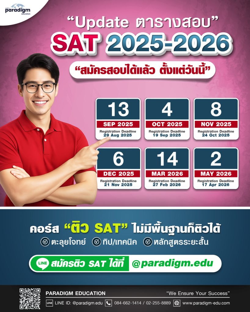 #Paradigm_education #ศูนย์สอบ_SAT #SAT #New_SAT #ติว_SAT #เรียน_SAT #สอบ_SAT #สอบเทียบ #SAT_คืออะไร